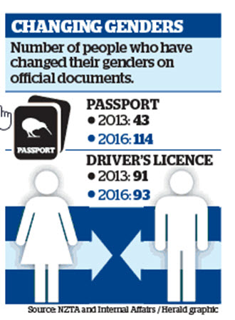 In the past five years, almost 400 Kiwis have changed their official gender identity on their passport. The number rose from 14 people in 2012 to 114 last year. In 2017, 79 people had done so at the time an Official Information Act request was received in September.